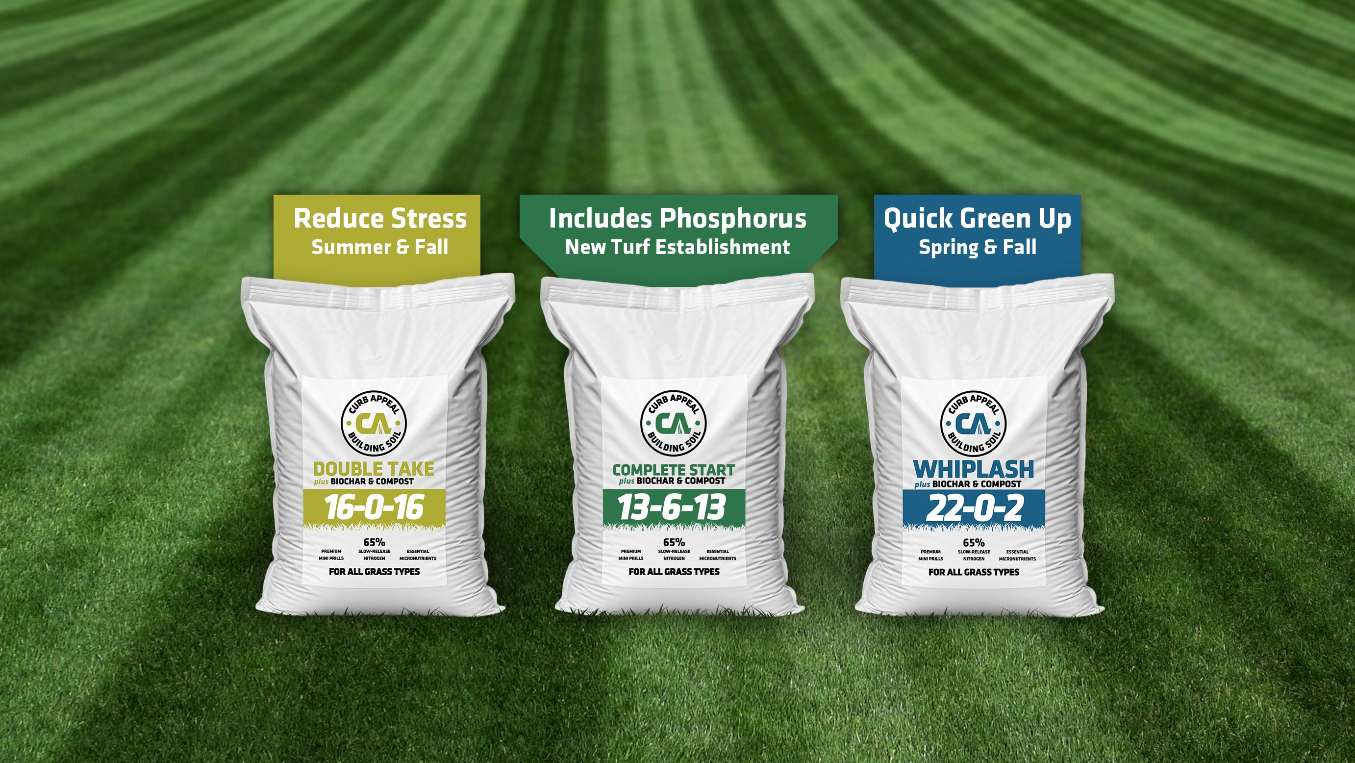 - Curb Appeal’s hybrid organic-inorganic fertilizer synergizes compost, biochar, and non-organic elements for a vibrant, resilient lawn through consistent, lower-rate applications, optimizing soil and turf health.