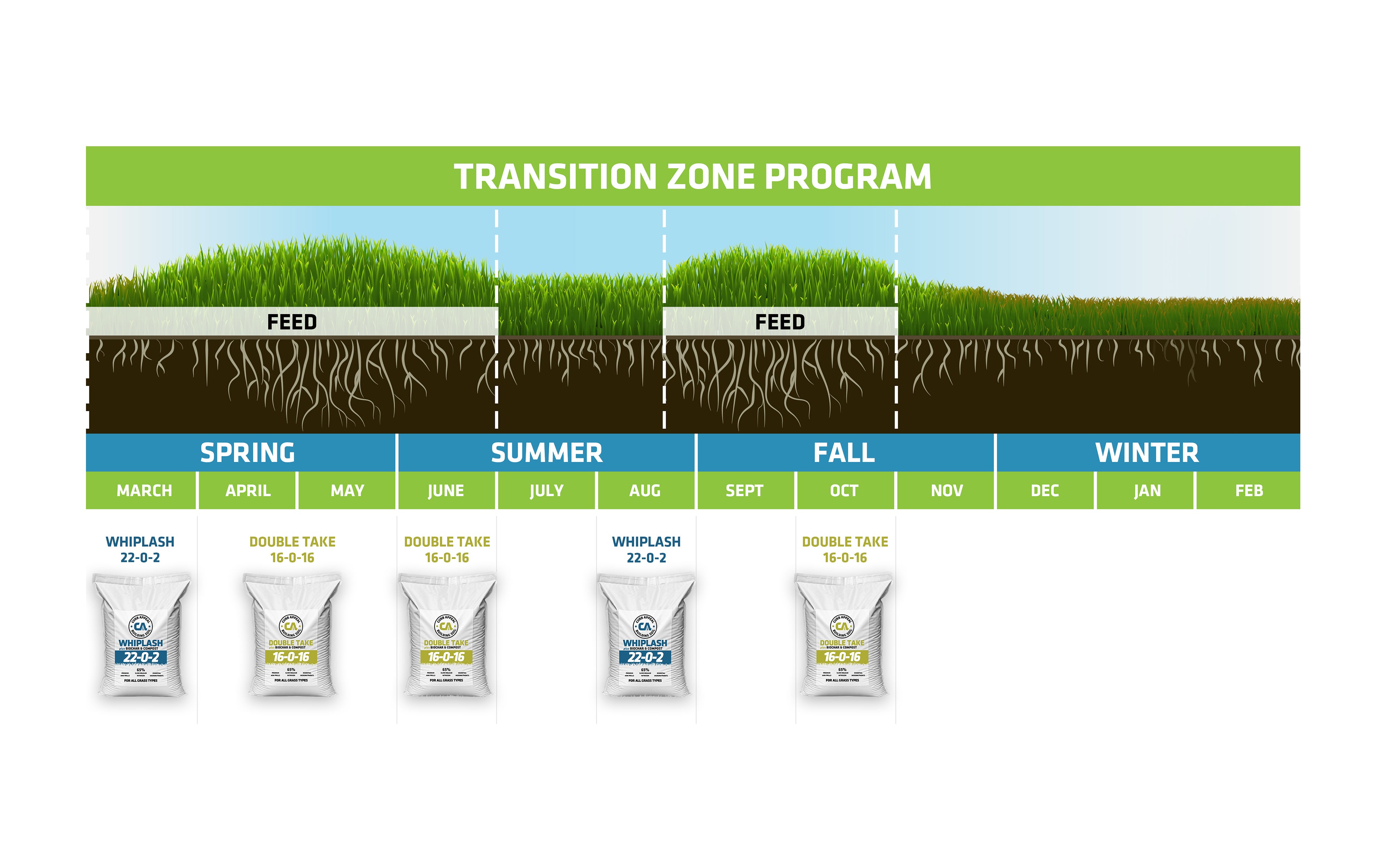 Start your transition zone lawn program this March when soil temps reach 55 degrees. Bundle and start today!